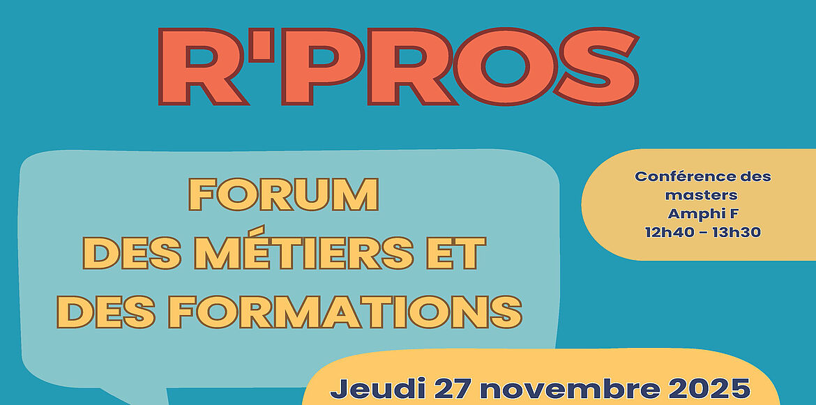 Ne manquez pas le grand rendez-vous de notre Faculté : Le Forum des Métiers et des Formations, piloté par le Service R’Pros, avec le concours du service scolarité masters.