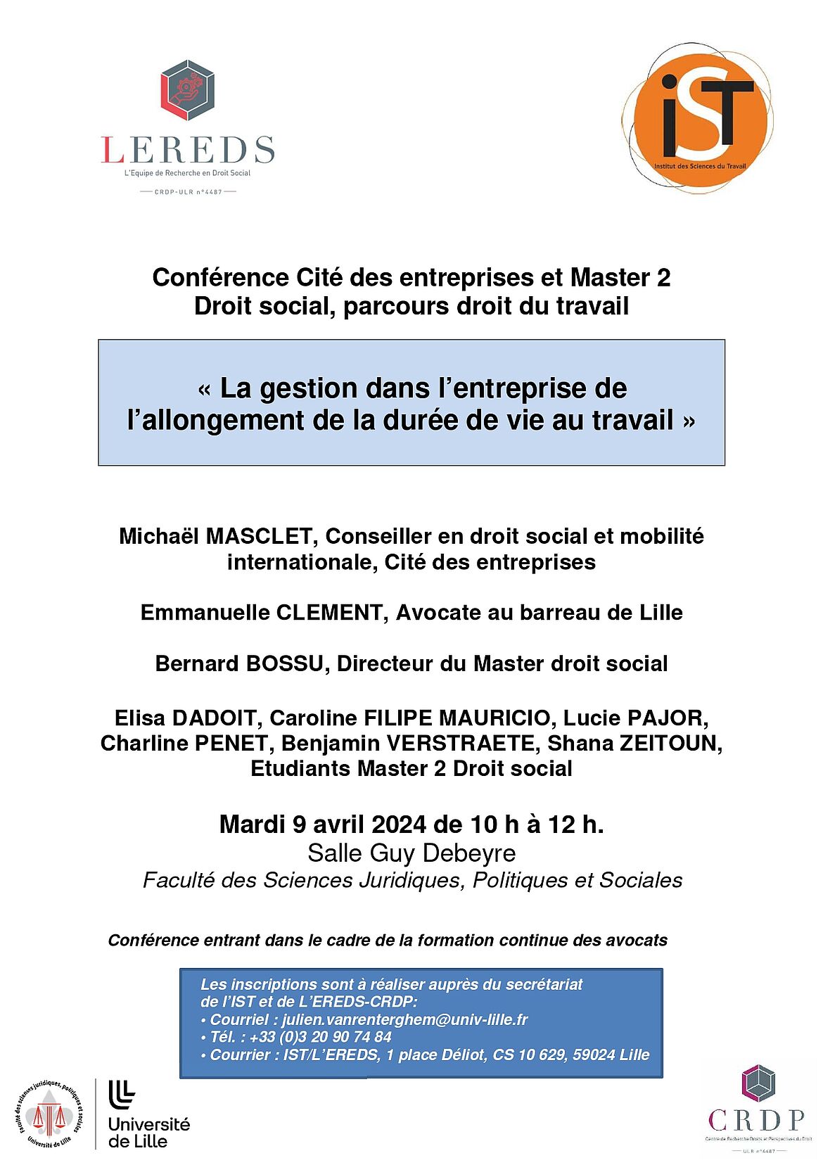 Conférence "la gestion dans l'entreprise de l'allongement de la durée au travail" 09/04/2024 Institut des Sciences du Travail (IST) Partager sur Facebook Partager sur Twitter Retour